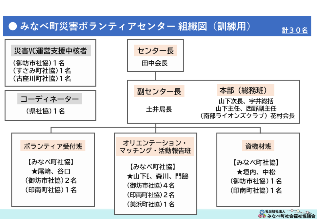 ●みなべ町災害ボランティアセンター組織図 (計30名)