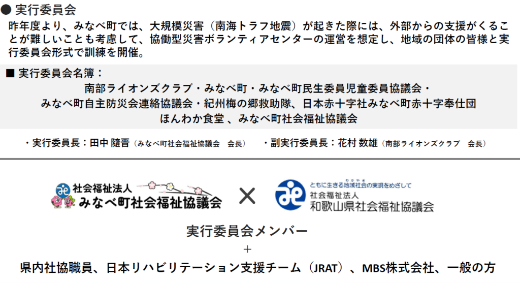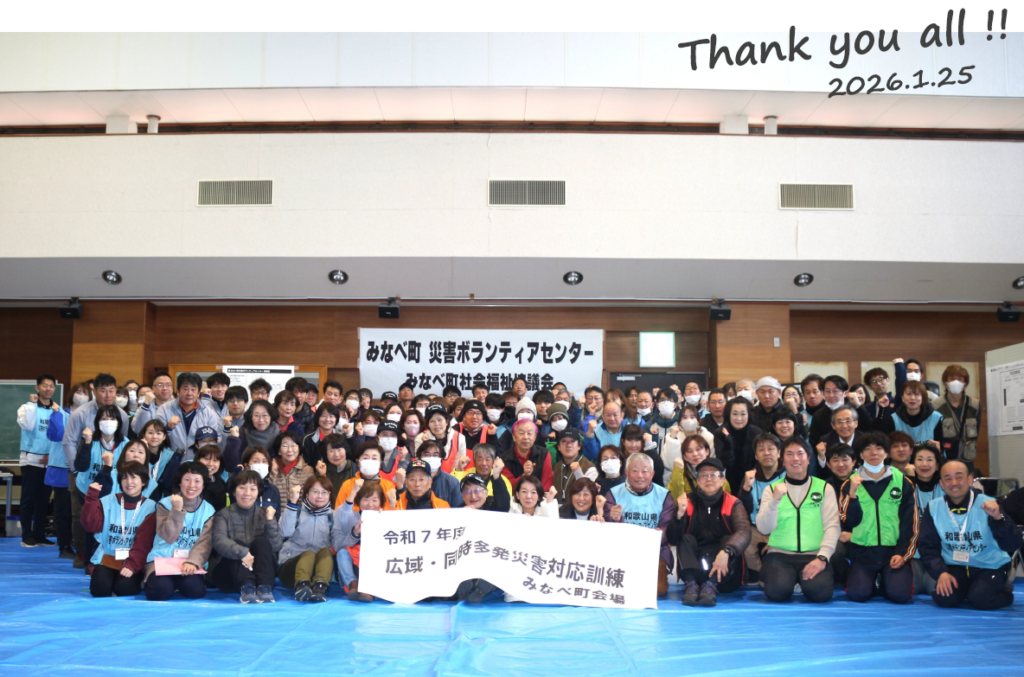 和歌山県社会福祉協議会主催のもと、県内3か所(有田市・日高川町・みなべ町)において、広域・同時多発災害を想定した災害ボランティアセンター立ち上げ訓練を実施しました!
